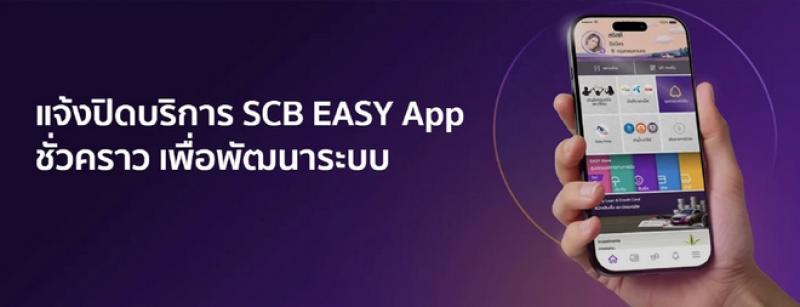 ธนาคารไทยพาณิชย์ แจ้งปิดบริการ SCB EASY App ชั่วคราว เพื่อพัฒนาระบบ โดยมีรายละเอียดช่วงเวลาดังต่อไปนี้