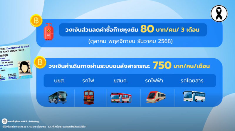 วงเงินส่วนลดค่าซื้อก๊าซหุงต้ม 80 บาทต่อคนต่อ 3 เดือน (ต.ค. - ธ.ค. 68)